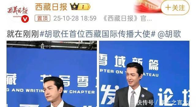实际上,除了成为西藏国际传播大使,胡歌还官宣了另一个好消息,真是双喜临门。