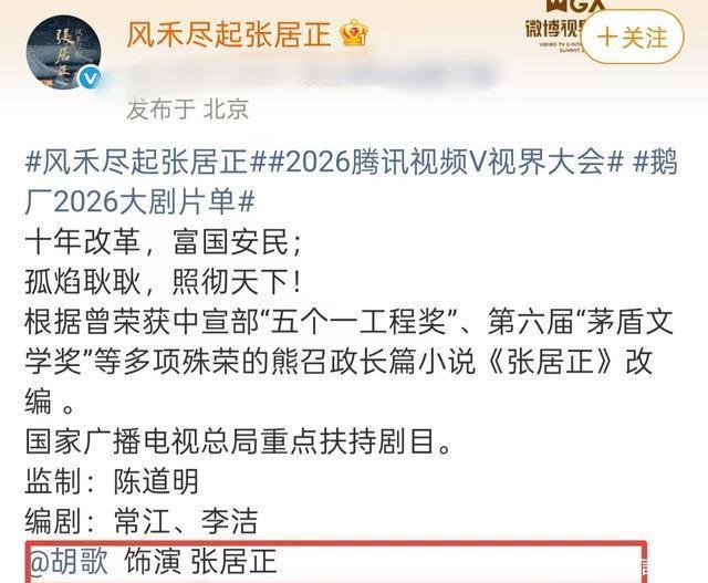 那就是他的新剧来了,《风禾尽起张居正》官宣,胡歌扮演张居正,大男主排面拉满,这对胡歌剧粉来说是件喜事,终于可以看到他的新作品了。